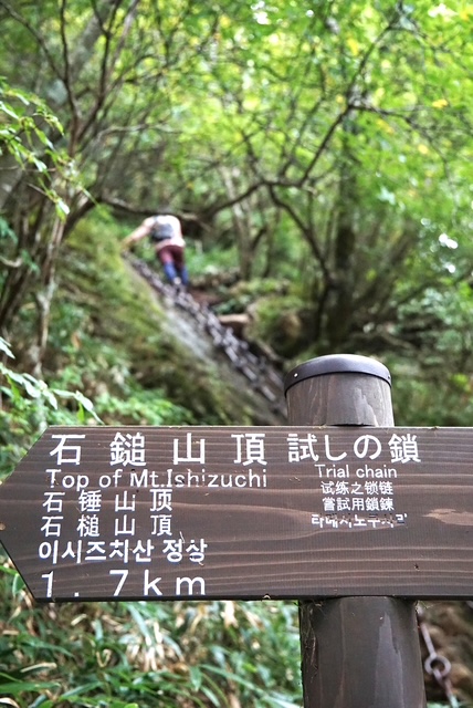 随分登ってきたところで石鎚山名物「試しの鎖」ここも修行の場としてほぼ垂直にちかい絶壁を鎖につかまって約60m~70mを登る所が4ヶ所あります