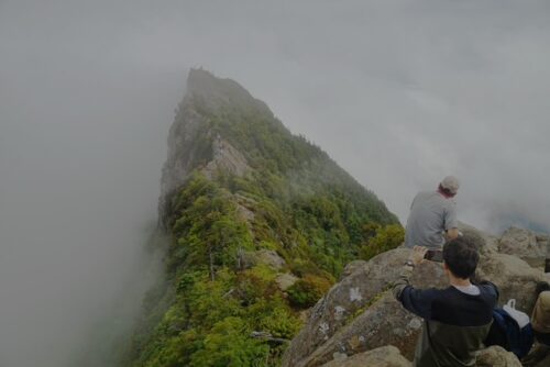 デンジャラスな所を通り イエー!ここが西日本最高峰なのかな?無事に登頂です