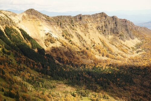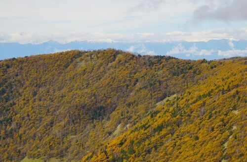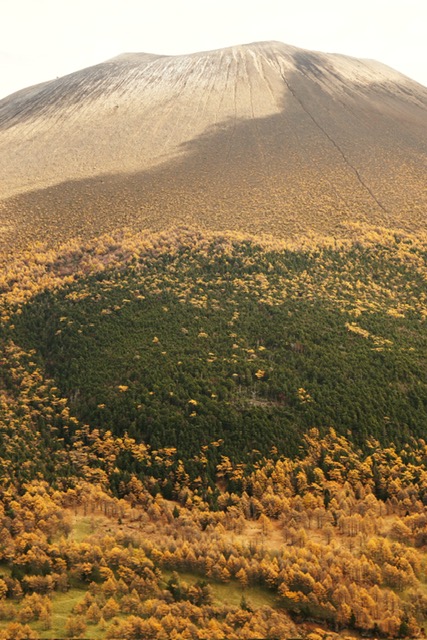 外輪山を一旦下ると眼下に見える「カラマツ林」の中を歩くことが出来ますが 今回は上から見るだけ あの中も凄いらしい