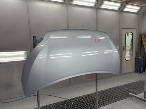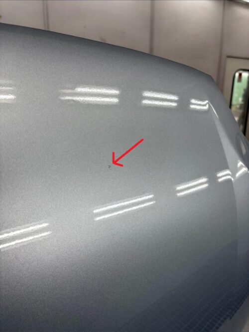 先日塗装したボンネットですが吹上最後にポツンと素人目には気付かない1ミリほどのホコリが1つ